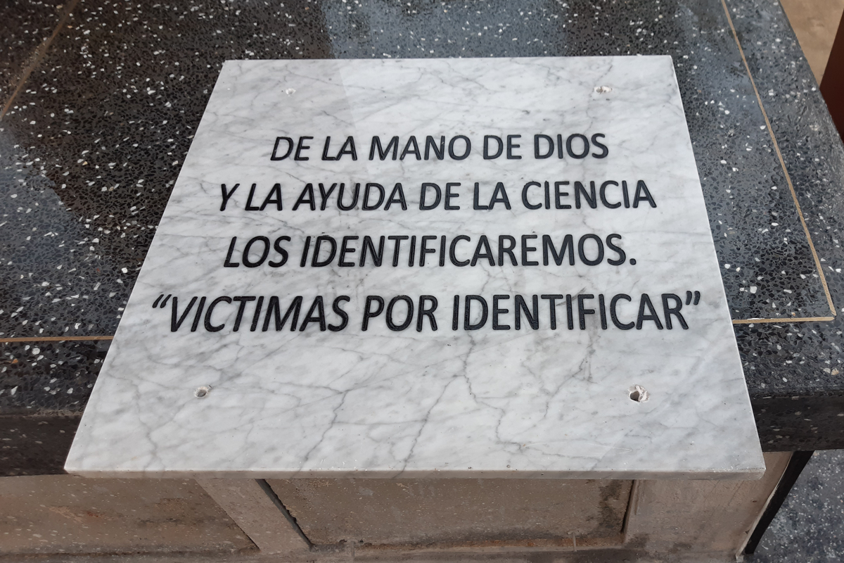 El entierro es por grupos para permitir el acompañamiento en el dolor y posibilitar que cada familia tenga el tiempo para decir algunas palabras, permanecer en silencio o dedicar canciones a quienes se están enterrando. Como dice un familiar, las palabras, rezos, cantos y canciones son necesarios para «poder llorar y sentir más». La jornada culmina a las ocho de la noche con el entierro de un niño entre cuatro y ocho años al que no fue posible establecer su identidad y la disposición de dos ataúdes con las partes y fragmentos no identificados en la última bóveda del mausoleo que dice «De la mano de Dios y la ayuda de la ciencia los identificaremos “Víctimas por identificar”».