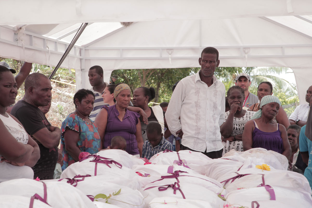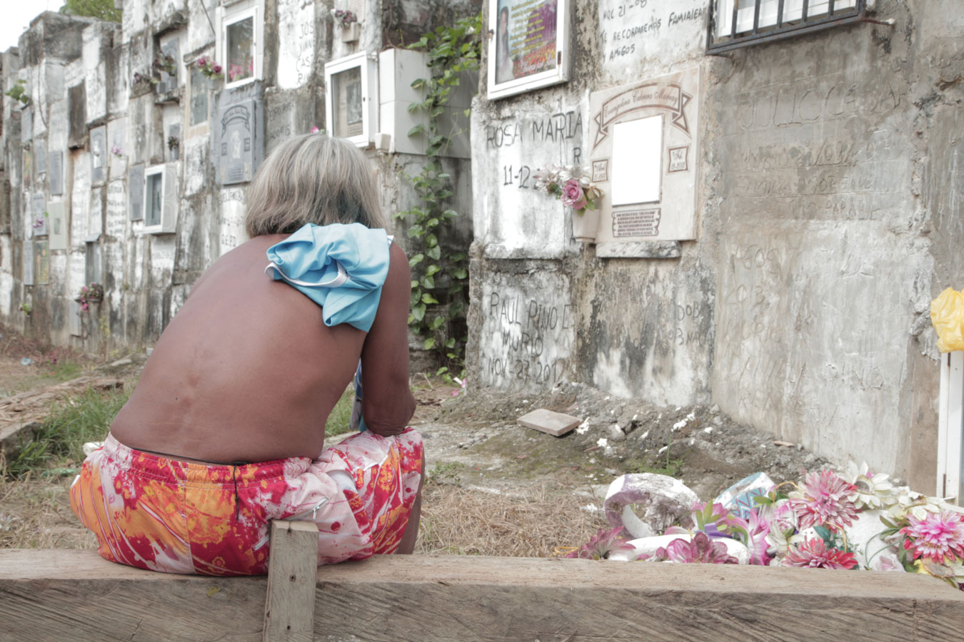 Imagen de familiar cargando el cuerpo de su familiar hacia las bóvedas temporales en Bellavista Nuevo. Mayo, 2017. Foto: Comité.