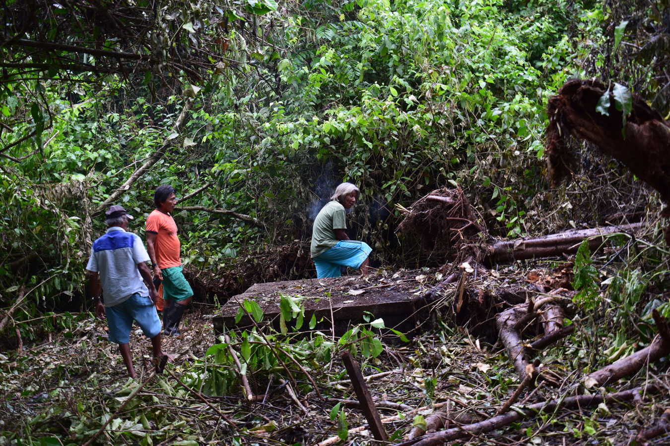 Ritual y rezo inicial a cargo de Saulo Enrique Mosquera (q.e.p.d) en el cementerio de Pogue antes de empezar el proceso de exhumación.Mayo, 2017. Fotos: Comité. Parte del grupo de las personas sabedoras que asesoran y acompañan el proceso. Mayo, 2017. Fotos: Comité.