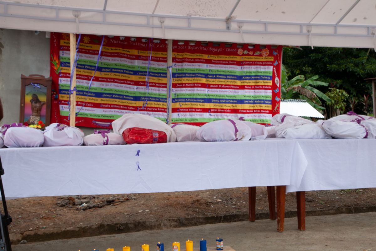 La materialización de los procedimientos de exhumación, identificación, individualización, entrega y entierro final que tienen lugar entre el 2017 y el 2019 es resultado de este largo recorrido que las comunidades afros e indígenas de Bojayá y del Medio Atrato chocoano hemos emprendido para reclamar y garantizar nuestros derechos a la verdad, al duelo, al ritual y al entierro digno de nuestros seres queridos, y contra la impunidad que permanece frente a las violaciones y atrocidades cometidas en el territorio.